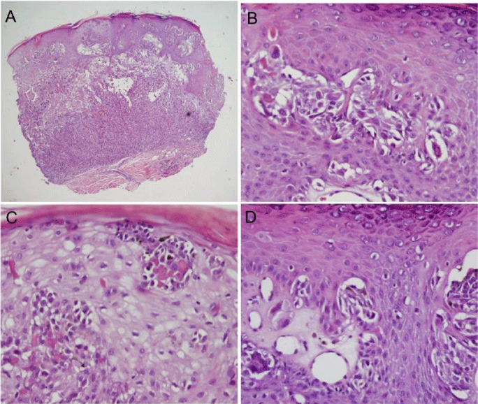 Our case is especially interesting due to the presence of a spitzoid melanoma exhibiting Touton-like, osteoclast-like and foreign-body giant cells. Guitart and Gerami [8] reported a case of a 4-year-old boy with a growing lesion on the left arm. The hematoxylin and eosin sections revealed Touton-like giant cells in a Spitz’s nevus. In contrast, our case showed absence of maturation with conspicuous deep dermal mitotic and abnormal figures consistent with melanoma.